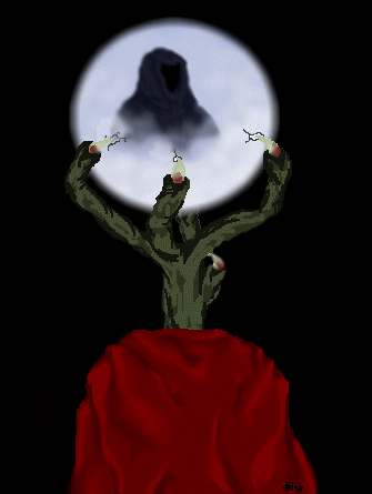 This was inspired in part by Ursula LeGuin's book "A Wizard of Earthsea." Just as Ged ran from the shadow that followed him until he finally faced it and discovered that the shadow was the other part of his soul....so we fear that part of us that we do not know. The crystalball holds the future of that self, gripped in the claws of a nightmare. Only when we truely look into the ball can we know our true selves and release the shadow of our fear.